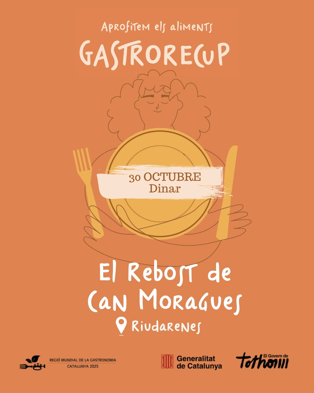 Aquest any ens sumem a la 4a edició de Gastrorecup, una iniciativa per donar valor als aliments i lluitar contra el malbaratament alimentari.El menú serà sorpresa — ningú tria! — elaborat amb aliments recuperats en perfecte estat però rebutjats pel circuit comercial. Una experiència única, conscient i deliciosa per només 20 €.